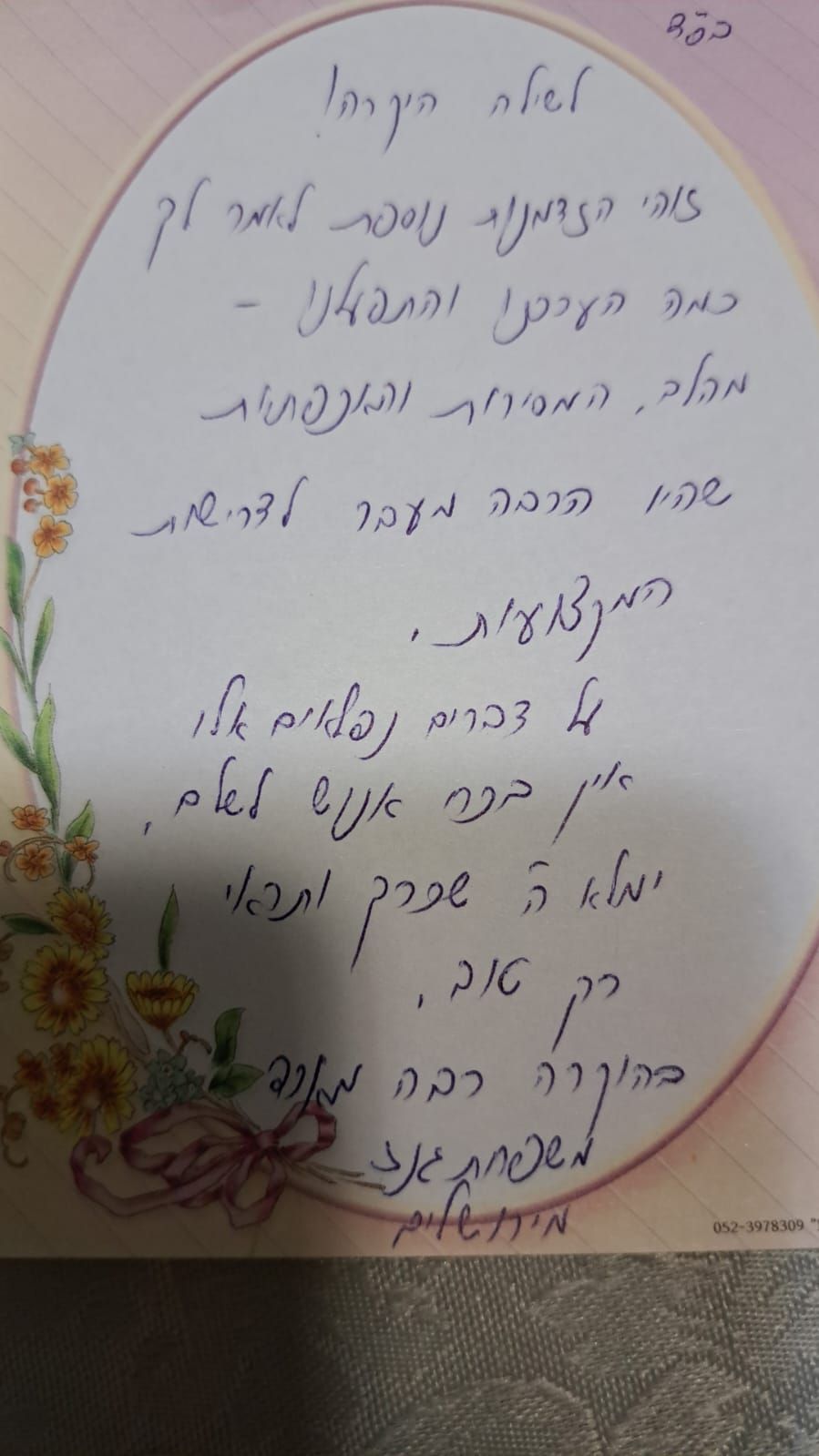 אוהבת המון ומקווה שנשמור על קשר. שלך, מ. ד